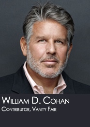 William D. Cohan, a former senior Wall Street M&A investment banker for 17 years at Lazard Freres & Co., Merrill Lynch and JPMorganChase, is the New York Times bestselling author of three non-fiction narratives about Wall Street: Money and Power: How Goldman Sachs Came to Rule the World; House of Cards: A Tale of Hubris and Wretched Excess on Wall Street; and, The Last Tycoons: The Secret History of Lazard Freres & Co., the winner of the 2007 FT/Goldman Sachs Business Book of the Year Award. His latest book, The Price of Silence, about the Duke lacrosse scandal was published in April 2014 and was also a New York Times bestseller. The paperback was published in April. He is a contributing editor at Vanity Fair and a columnist for the DealBook section of the New York Times. He also writes for The Financial Times, Bloomberg BusinessWeek, The Atlantic, The Nation, Fortune, and Politico. He previously wrote a bi-weekly opinion column for The New York Times and an opinion column for BloombergView. He also appears regularly on MSNBC, on Bloomberg TV, where he is a contributing editor, on CNN and the BBC-TV. He has also appeared as a guest on the Daily Show, with Jon Stewart, The NewsHour, The Charlie Rose Show, The Tavis Smiley Show, and CBS This Morning as well as on numerous NPR, BBC and Bloomberg radio programs. He is a graduate of Duke University, Columbia University School of Journalism and the Columbia University Graduate School of Business.