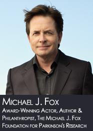 Born in Canada, Michael J. Fox is an award-winning television and film actor whose enduring career as a performer has made him an icon to countless fans around the globe. In 1991, at age 29, he was diagnosed with Parkinson's disease, news he shared with the public in 1998. In 2000, to help advance scientific progress toward a cure for Parkinson's disease, he established The Michael J. Fox Foundation for Parkinson's Research.
