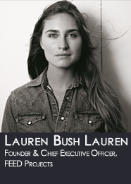 Lauren Bush Lauren is the Founder and CEO of FEED Projects, a company with the simple mission of creating good products that help FEED the world.