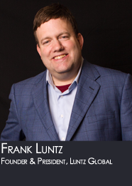 Frank Luntz is one of the most honored communication professionals in America today. "The Nostradamus of pollsters," said Sir David Frost, while Time magazine named him one of "50 of America's most promising leaders aged 40 and under," and Newsweek magazine identified him as No. 24 on their Power Elite survey. In 2012, he finished 87th in a Time magazine global poll of the "most influential people in the world." Frank was named one of the four "Top Research Minds" by Business Week, "the hottest pollster" by The Boston Globe, and was a winner of The Washington Post's coveted "Crystal Ball" award for being the most accurate pundit. His focus groups have become so influential that presidential candidate Barack Obama had this to say following the PBS presidential debate: "When Frank Luntz invites you to talk to his focus group, you talk to his focus group."