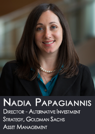 Nadia Papagiannis, CFA is the director of alternative investment strategy for Goldman Sachs Asset Management's global third-party distribution. In this role, she leads the firm's alternatives education and thought leadership initiative, with a focus on liquid alternatives.