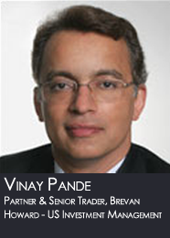Vinay Pande joined Brevan Howard US Investment Management LP as a Partner & Senior Trader in October 2012. He is the co-manager of the Brevan Howard Strategic Macro Fund. Prior to joining the Firm, Vinay spent six years at Deutsche Bank Global Markets Research where he was Managing Director & Chief Investment Advisor. Prior to Deutsche Bank, Vinay spent thirteen years in senior portfolio management and proprietary trading roles at Caxton Associates, JPMorgan Chase, Credit Suisse and Goldman Sachs. Vinay started his money management career at the World Bank in Washington D.C. working for nine years (1984-1993) in senior investment roles including as Chief Investment Officer in the Investment Department. Vinay graduated from Wharton School, University of Pennsylvania, with a Master of Business Administration (1985).