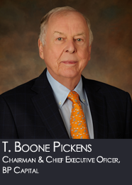 T. Boone Pickens is one of the nation's most successful businessmen, first building one of the nation's largest independent oil companies, Mesa Petroleum, and later reinventing himself in his 70s as one of the most successful investment fund operators with BP Capital. In July 2008, Boone launched the Pickens Plan (www.PickensPlan.com), a $100 million grass-roots campaign aimed at reducing this country's crippling addiction to OPEC oil.