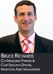 Bruce Richards is the Chief Executive Officer and Co-Managing Partner of Marathon Asset Management. Richards is responsible for general oversight of the $12.7 billion the firm manages on behalf of its institutional investors. He also leads the firm's Executive Committee and is a member of its Investment Committee. Richards' day-to-day presence is critical in maximizing Marathon's synergies and leveraging the intellectual capital throughout Marathon.